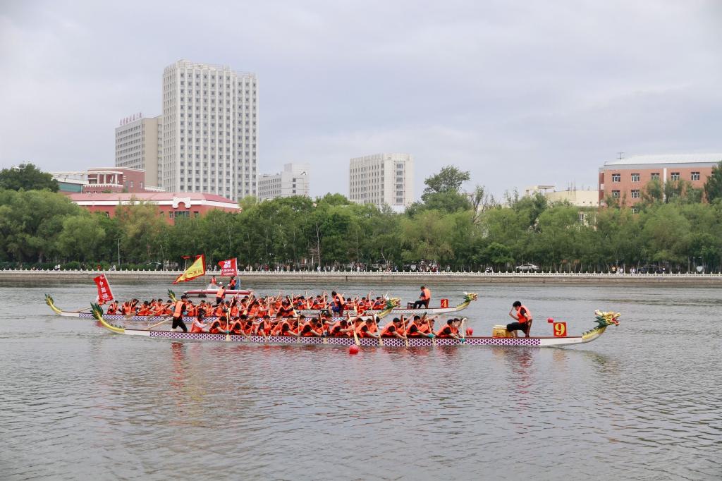 齐齐哈尔大学与齐齐哈尔市校地携手共同举办龙舟赛事,是学校履行大学职能、助力文化强市建设、传承引领区域文化发展的担当与作为,更是学校践行文化兴省和高教强省战略、打造校地合作精品文化项目的创新之举。六年来,在文化传承和创新的历史使命的鼓舞下,齐大学子与鹤城精英们用拼搏和汗水延续端午节特色传统,为鹤城打造了一场又一场民俗风情浓郁、地方特色突出、群众喜闻乐见的龙舟赛事,充分展现了以爱国主义为核心的民族精神和以改革创新为核心的时代精神,展现了齐齐哈尔市独特的人文魅力和拼搏精神,展现了齐大学子的奋进活力和青春风采。在习近平新时代中国特色社会主义思想和党的十九大精神的引领下,齐大学子与鹤城各界精英在比赛中,以舟树德,以桨铭志,挥洒汗水,奋力拼搏,用喜闻乐见的形式共同喜庆新中国成立七十周年,共同纪念五四运动一百周年,为鹤城人民奉献了一道民俗盛宴,演绎了一场优秀传统文化嘉年华。