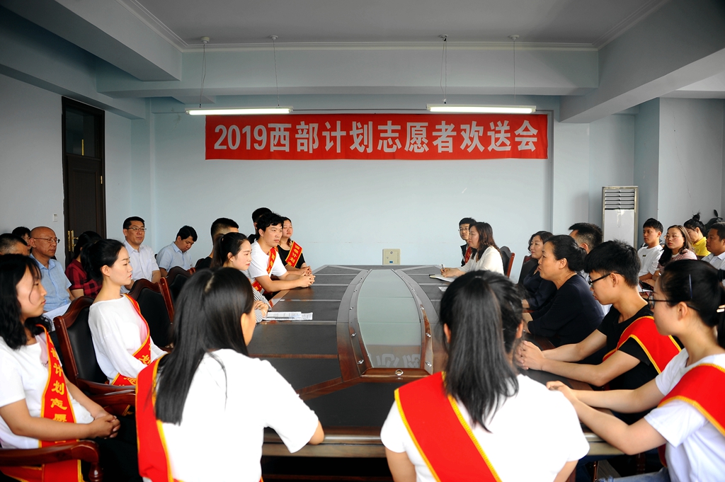 6月26日上午,我校2019年西部计划志愿者欢送会在学校办公楼519会议室举行,校党委书记兰景力、校长陈桂芝、校党委副书记齐宏伟出席欢送会,西部计划志愿者所在学院主管学生工作的党委书记,副书记、副院长、团委书记以及校团委工作人员参加了欢送会。