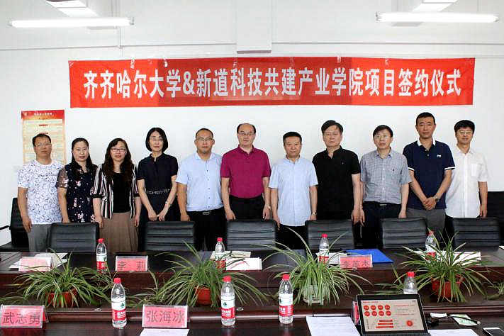 6月26日下午,齐齐哈尔大学与新道科技股份有限公司共建产业学院签约暨揭牌仪式在逸夫教学楼1304会议室举行。我校副校长李英杰,新道科技股份有限公司副总裁宋健、黑龙江分公司总经理张海冰出席仪式,教务处和经济与管理学院相关负责人、系主任、部分教职工及学生代表参加了仪式。经济与管理学院副院长苗雨君主持仪式。