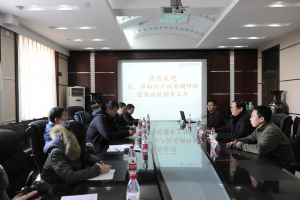科技处阚伟就我校近两年知识产权方面开展的主要工作和取得的业绩向调研组进行了汇报。听取了汇报之后,省知识产权局领导充分肯定了我校知识产权方面开展的工作和取得的进步,尤其是发明专利申请量和发明专利授权量的增幅。调研组一行同时对我校知识产权工作提出指导意见和建议,希望我校依托优势学科,深入挖掘潜力,注重发明专利,进一步提高专利申请质量;打造一支专业化、高素质的知识产权管理队伍;同时加强专利成果的转化、转让工作。