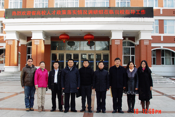 汇报会由校党委书记李海红主持,他首先对调研组的莅临表示热烈欢迎,对多年来省委高校工委对我校人才工作的大力支持表示衷心感谢。校党委常委、副书记盖元臣,党委常委、组织部部长齐宏伟,人事处处长张文治,教务处处长张树军,学生工作部(处)副部(处)长张树启,科技处副处长伊全胜,校团委副书记迟生茂参加了汇报会。