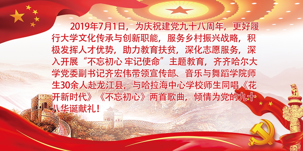 齐齐哈尔大学与哈拉海乡中心学校师生同庆建党98周年快闪活动