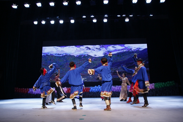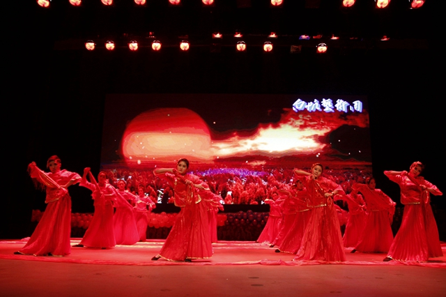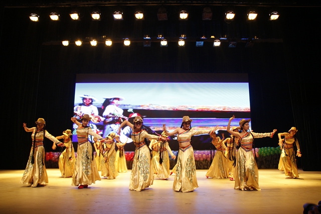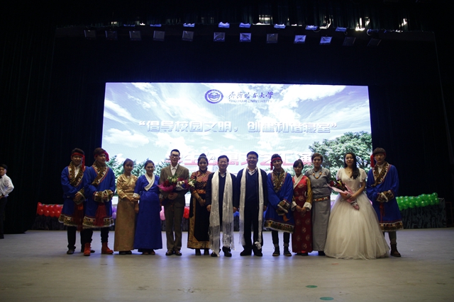 由我校外国留学生自编自导自演的歌伴舞充满着异域的风情,富有特色的西藏舞蹈、洁白的哈达等展示了雪域高原的神奇魅力,悠扬的萨克斯演奏让会场旋律涤荡,传统书法才艺表演赢得现场观众的阵阵掌声,激昂亢奋的重金属乐队释放极限活力……最后在美妙的音乐声中所有的演员登上了舞台进行谢幕仪式,也代表着汇演完美地落下了帷幕。最后,与会各位领导与全体演职人员合影留念。