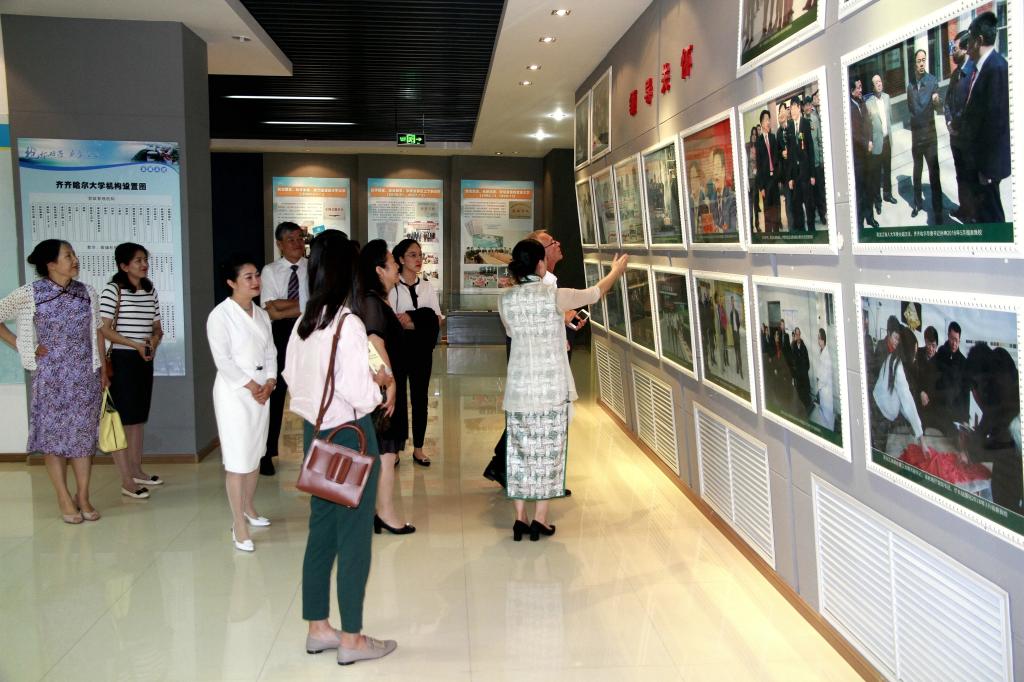 毕满天一行在副校长张树军及有关部门负责人陪同下,首先来到学校校史馆,在认真听取了讲解员对学校历史沿革等情况的讲解后,毕满天对齐大人多年执鞭杏坛、弘文励教、励精图治的办学历史表示赞赏,并为校史馆题字留念。