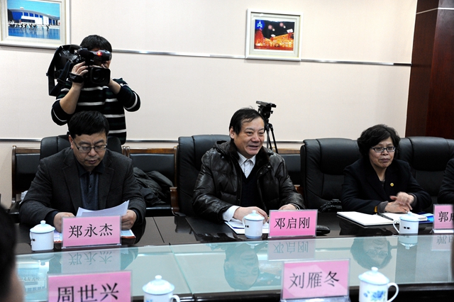 邓启刚详细介绍了近年来学校科研工作和科技人才队伍建设的相关情况,重点介绍了学校深入贯彻上级领导的有关指示精神,依托本地产业优势、资源优势,紧紧围绕服务地方经济社会发展,在农产品精深加工方面所开展的相关科研工作机成果转化情况。