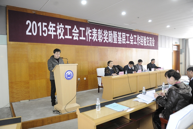 为深入贯彻中央和省委《关于加强和改进党的群团工作的意见》精神和要求,进一步加强基层工会组织建设,认真总结和交流工会工作的好经验、好做法,推进工会工作制度化、规范化、科学化。12月8日下午,学校在西主7楼学术报告厅召开2015年校工会工作表彰奖励暨基层工会工作经验交流会议。