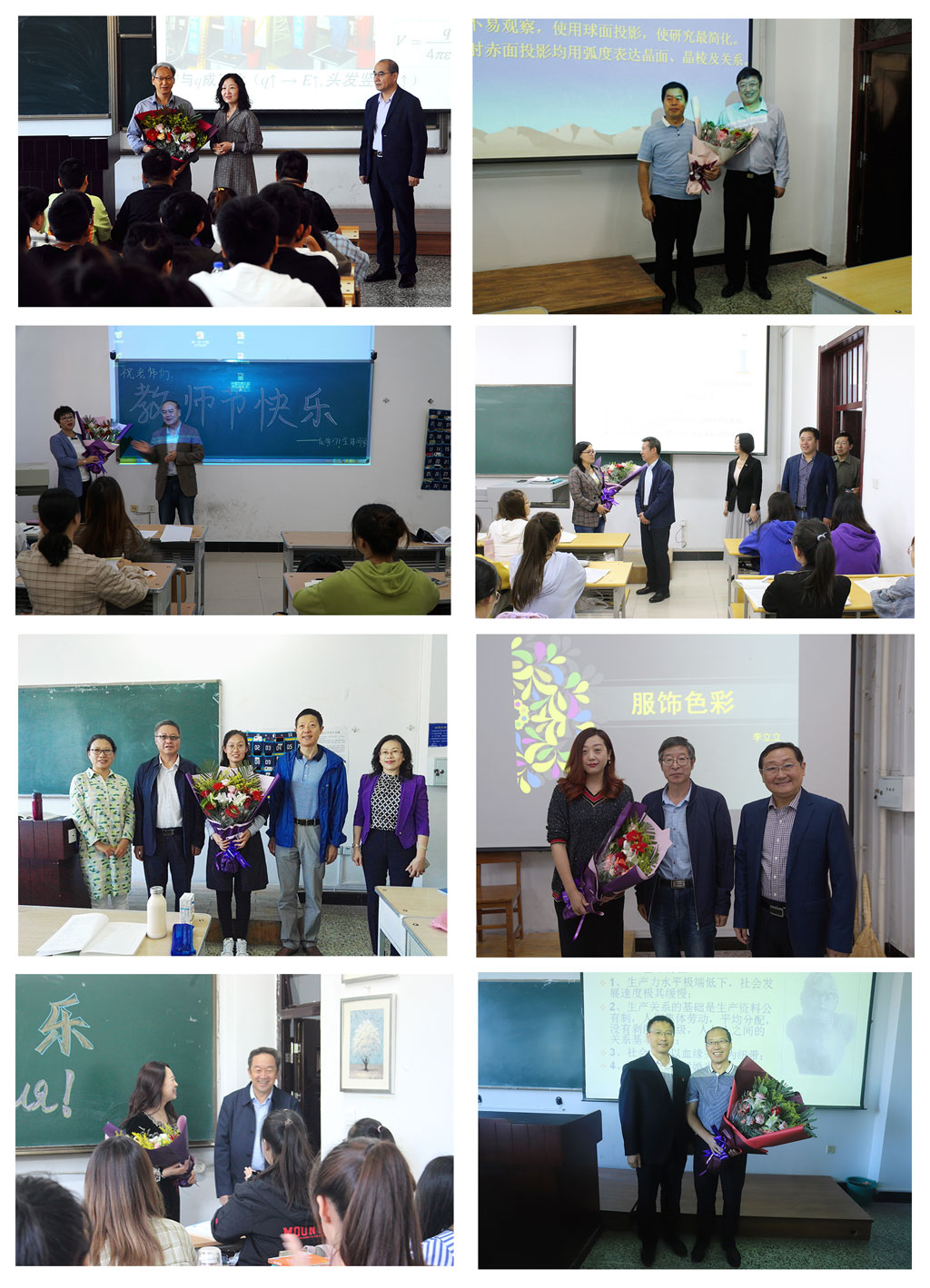 7:50分,校领导分别来到中区、东区和西区的教室,为正在准备上课的9位教师代表送上鲜花并祝他们节日快乐!校长陈桂芝代表学校感谢全校教职员工为学生成才和学校发展做出的突出贡献,她表示,学校的发展凝聚着大家的辛勤努力和无私奉献,希望全校教职工爱岗敬业,开拓创新,以身作则、率先垂范,继续发扬优良传统、树立师德风范,始终把“立德树人”作为根本任务,争当“四有”好老师,围绕有特色地方高水平应用型综合大学建设目标,乘势而上,做出新的贡献。