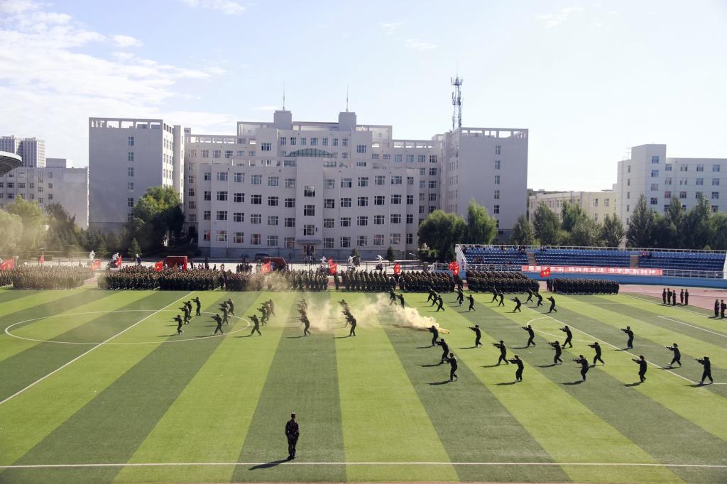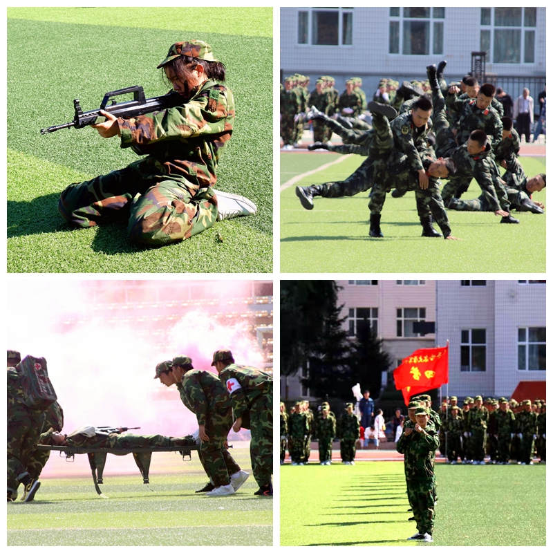 十六营(材料科学与工程学院)为大会做战术基础动作表演;七营(计算机与控制工程学院)为大会做战场救护表演;五营(体育学院)为大会做擒敌拳表演。 随后,武警承训部队教官进行了军体拳、擒敌拳等军事技能表演。战士们口号响亮,动作精准凌厉,博得现场师生阵阵雷鸣般的掌声。