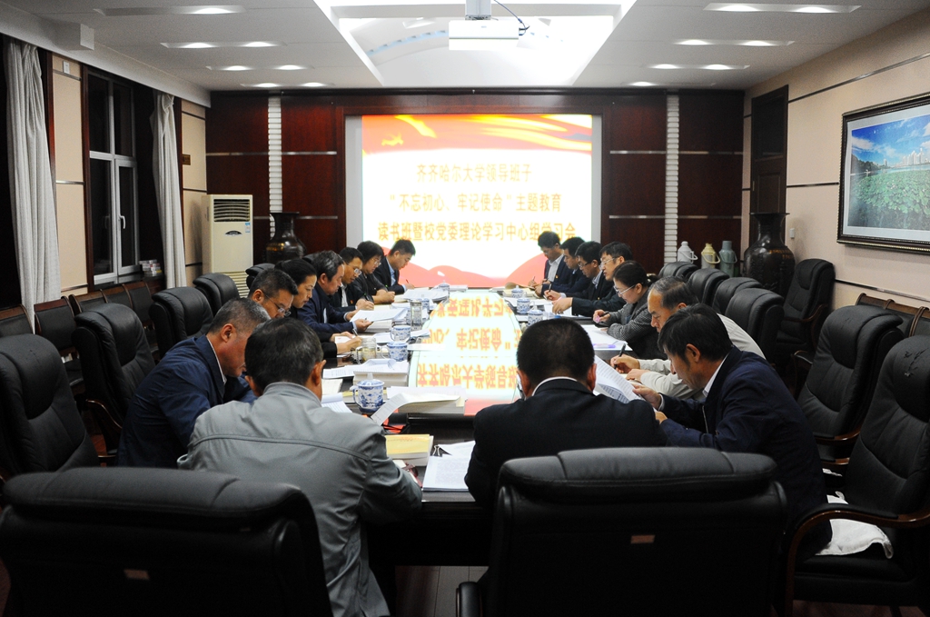9月17日18:30至21:30,齐齐哈尔大学领导班子“不忘初心、牢记使命”主题教育读书班第四次学习会暨校党委理论学习中心组学习会在办公楼504会议室召开,校党委理论学习中心组成员参加了会议。会议由校党委副书记、校长陈桂芝主持。