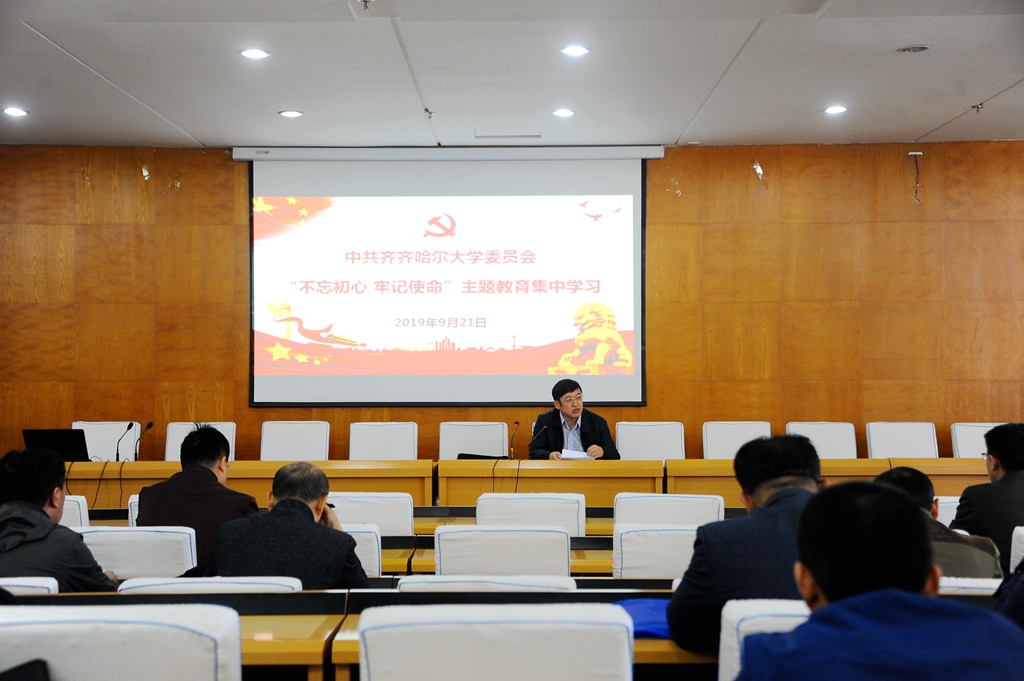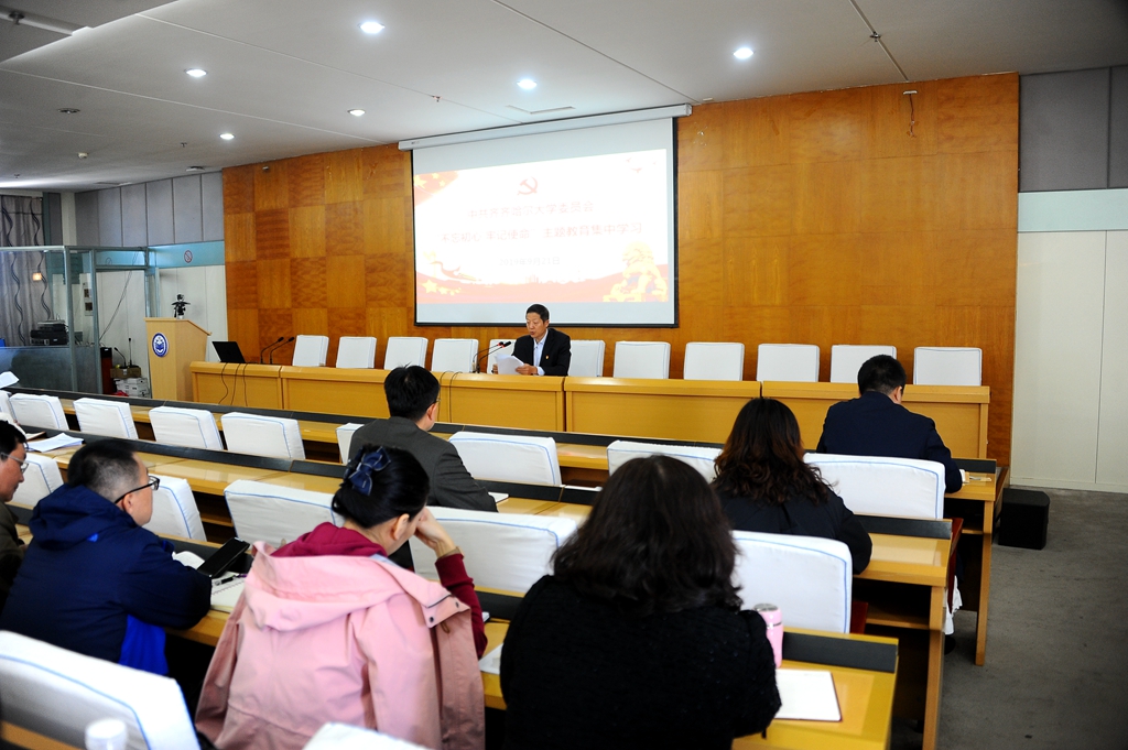 9月21日上午,全校机关各部门以及教辅单位副处级以上党员干部在西区主楼七楼学术报告厅开展“不忘初心、牢记使命”主题教育集中学习。校党委副书记张文治出席学习会。