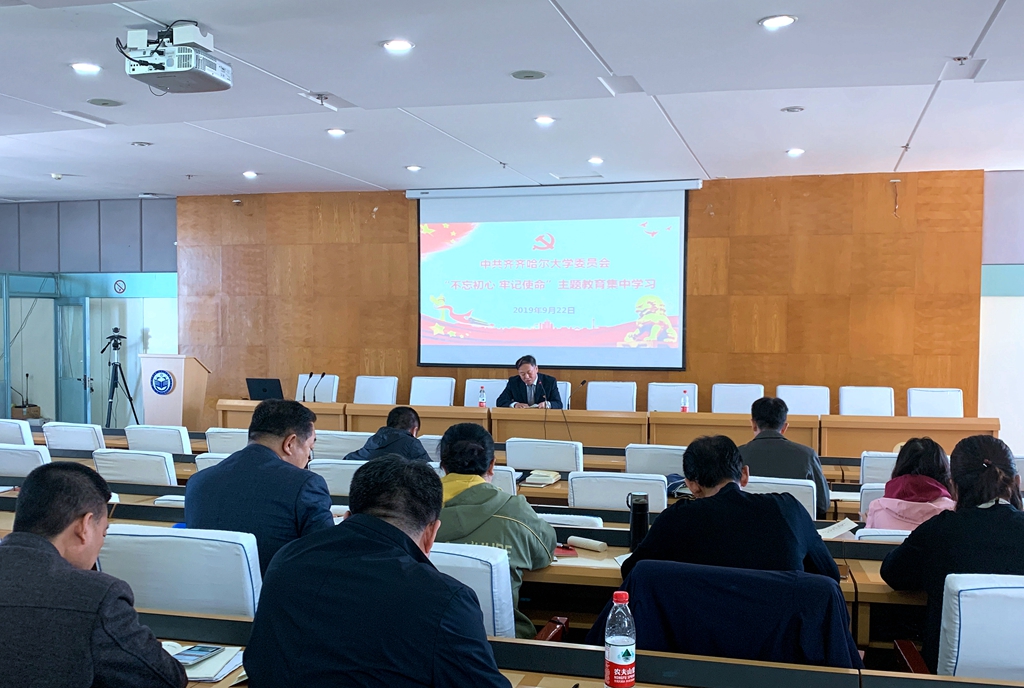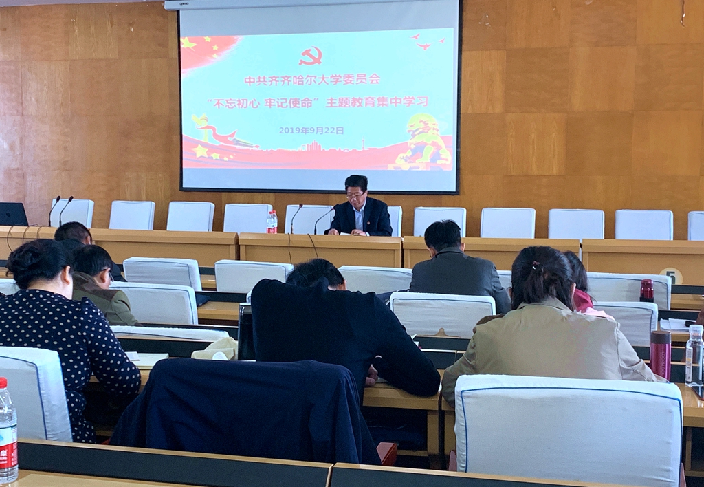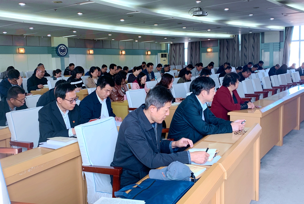 9月22日上午,全校机关各部门以及教辅单位副处级以上党员干部在西区主楼七楼学术报告厅开展“不忘初心、牢记使命”主题教育集中学习。校党委副书记张文治出席学习会。