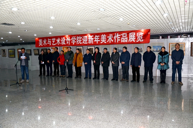 “美术与艺术设计学院迎新年美术作品展览”由美术与艺术设计学院副院长范铁明教授主持。开幕仪式后,领导、嘉宾与师生观看展览并合影留念。