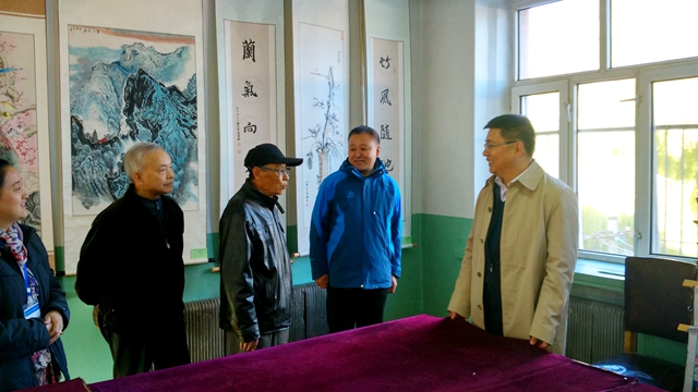 莫道桑榆晚,为霞尚满天。在离退休工作处处长王志刚等陪同下,校党委书记李海红,党委副书记盖元臣,校党委常委、工会主席李敏义认真观看了离退休老同志创作、征集的书画作品展,对离退休老同志精心创作的书画作品给予热忱赞誉,希望他们保持创作热情,老有所学,老有所乐,不断创作出更好的艺术作品,愉悦身心健康,提升生活品质,丰富晚年生活。