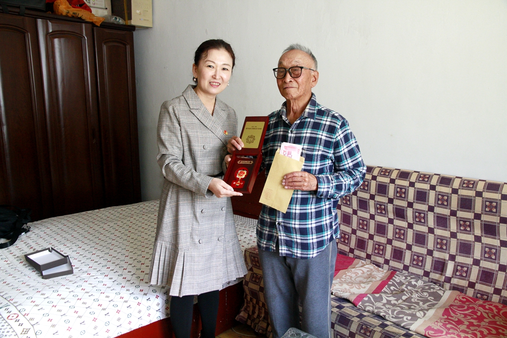 在庆祝新中国成立70周年之际,9月29日上午,校长陈桂芝、校党委副书记齐宏伟、校党委副书记张文治分别走访慰问了我校离休老同志张秀才、任海平、陈国春,向他们致以崇高敬意和亲切慰问,并转送了由中共中央、国务院、中央军委颁发的“中华人民共和国成立70周年纪念章”,还向他们转交了一千元慰问金。