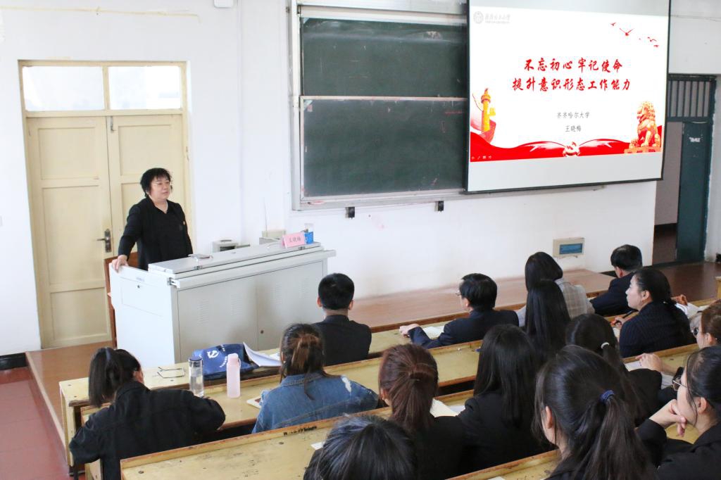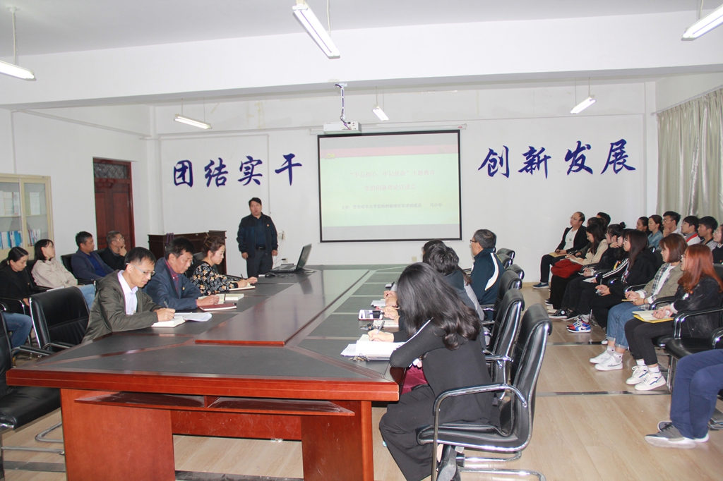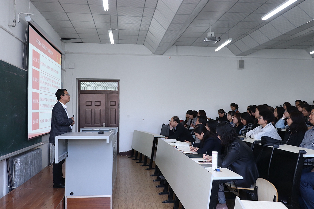 校党委常委、党委宣传统战部长、硕士生导师王晓梅教授,为经济与管理学院、文学与历史文化学院(新闻传播学院)的师生党员作了题为《不忘初心 牢记使命 做好意识形态工作》的辅导报告。王晓梅以严谨的逻辑、大量的实例,围绕为什么要开展“不忘初心、牢记使命”主题教育;开展“不忘初心、牢记使命”主题教育的根本任务、总要求、具体目标是什么;怎样提升意识形态工作能力等三方面内容,从国内到国际、从历史到时势,脉络清晰、具体生动地阐释了开展“不忘初心、牢记使命”主题教育的必要性,高校师生提升意识形态工作能力的紧迫性和重要性。