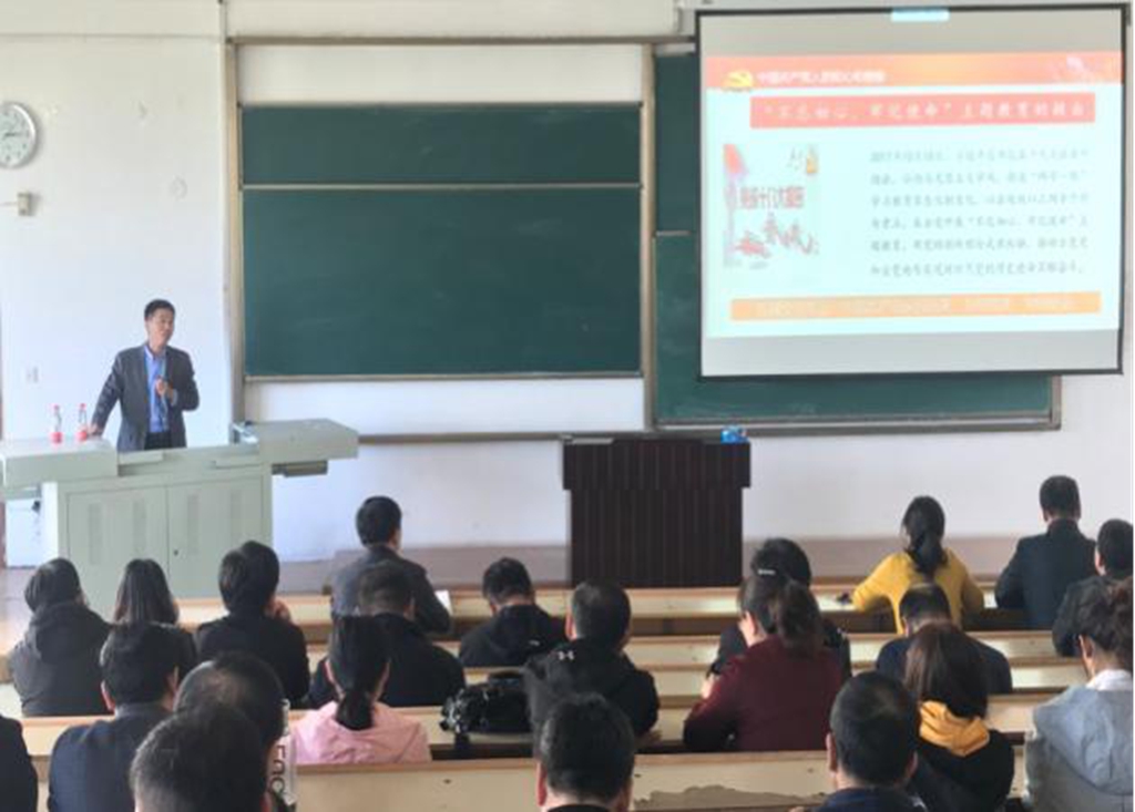 马克思主义学院中国近现代史纲要教研部主任、硕士生导师张春波副教授,为体育学院、美术与艺术设计学院的师生党员作了题为《历史与世界视野下“不忘初心、牢记使命”主题教育的意义》的辅导报告。张春波从历史视野认识中国共产党的成长成熟、世界视野了解中国共产党的初心使命、职业视野下审视高校教师的使命担当三个方面展开宣讲,引领师生从三个视野深刻理解和把握主题教育的重要意义。