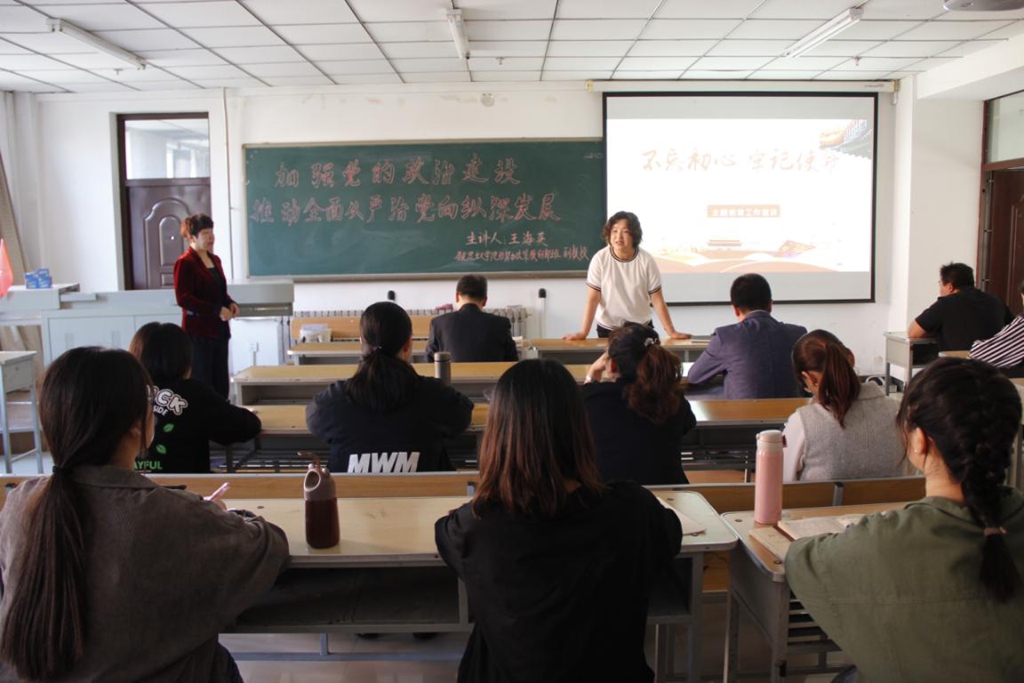 马克思主义学院形势与政策教研部主任王海英副教授,为国际教育学院、图书馆的师生党员作了题为《加强党的政治建设 推动全面从严治党向纵深发展》的辅导报告。王海英以“什么是党的政治建设”开篇,以中国共产党党史、新中国史为主线,从“旗帜鲜明加强党的政治建设”、“持续推进全面从严治党向纵深发展”、“巩固发展反腐败斗争压倒性胜利”、“积极开展落实‘不忘初心 牢记使命’主题教育工作”等四个方面展开报告,重点论述了党的政治建设的总体要求和“不忘初心 牢记使命”主题教育的重大部署、重大意义、总要求、根本任务、具体目标。