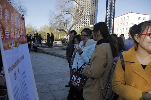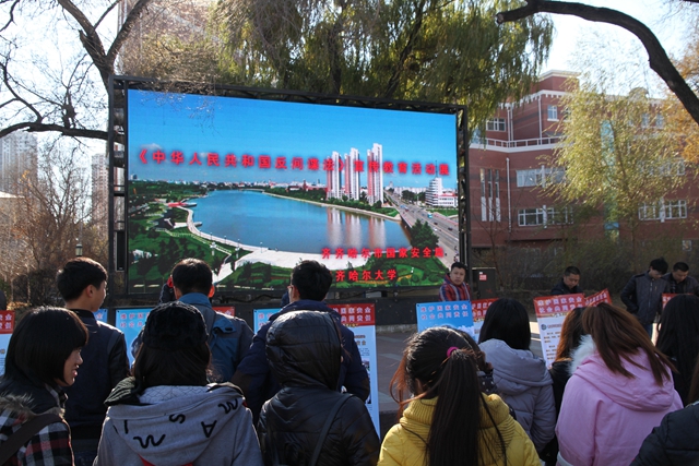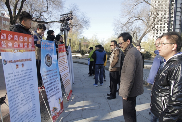 2015年11月1日是《反间谍法》颁布实施一周年。为切实做好《中华人民共和国反间谍法》的普法教育活动,进一步弘扬宪法精神,提高全民维护国家安全的自觉性,10月29日,我校保卫处(武装部)与齐齐哈尔市国家安全局在三致广场携手开展了《反间谍法》宣传教育活动。保卫处处长吴刚,武装部政委、保卫处副处长付建成,保卫处副处长刘增发等保卫处工作人员及近千名师生参加了宣传教育活动。