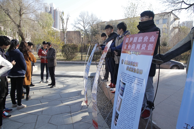 在普法宣传活动中,我校保卫处工作人员主要围绕国家安全机关在反间谍斗争中的职权、公民和组织的义务和权利以及法律责任等向师生进行宣传,并通过发放《反间谍法》宣传手册、宣传资料和现场咨询等方式,向师生进行宣传教育。