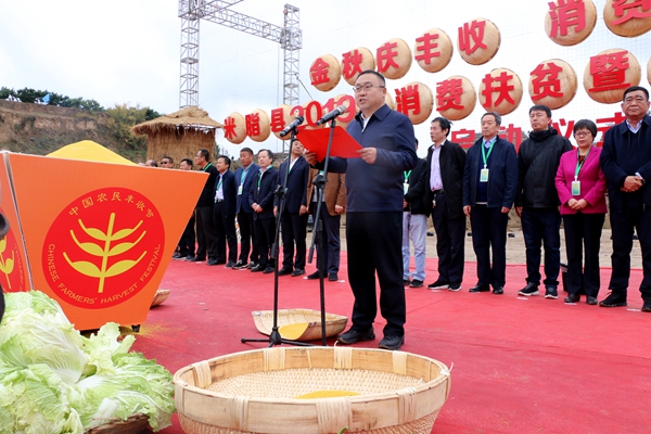 10月16日,副校长吕厚均、科研处处长荆涛与郭成宇教授在第39个世界粮食日和全国第6个扶贫日到来之际,应邀参加了在陕西省米脂县柳家坬村举办的,米脂县2019年消费扶贫暨中国农民丰收节。