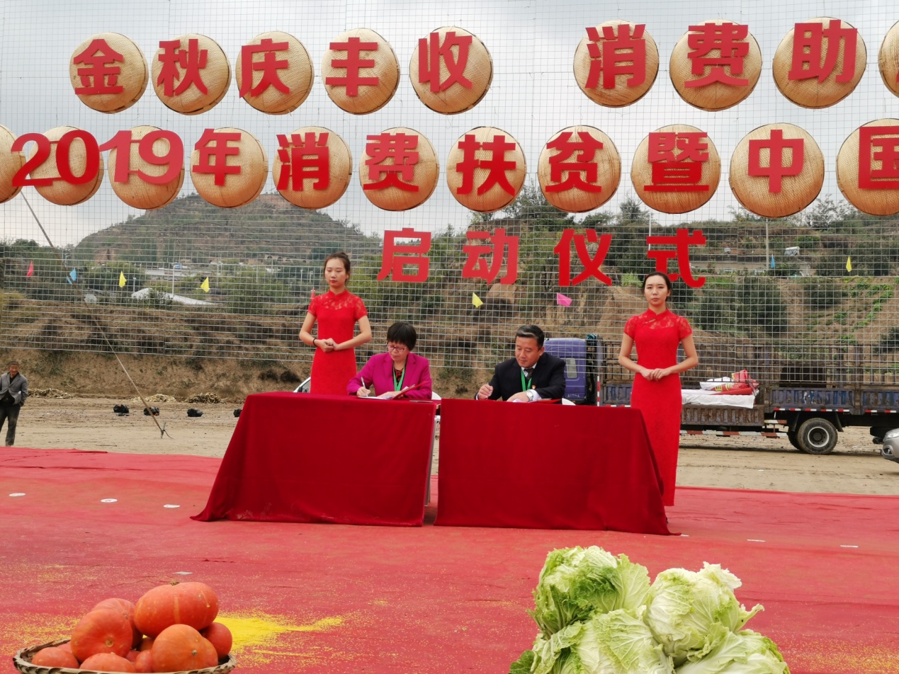 在消费扶贫签约仪式上,齐齐哈尔大学与米脂县政府签订校地合作框架协议,郭成宇教授与米脂县农业农村局签订《小米与苹果成分分析及探索技术服务合同》。