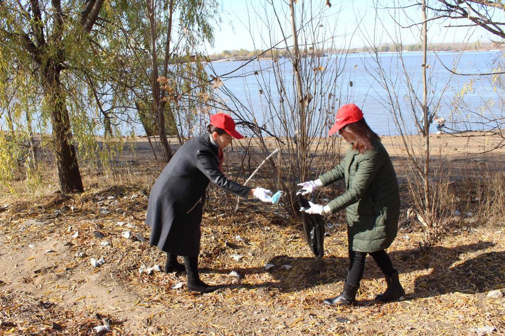 和平广场的活动结束后,师生们徒步来到嫩江大堤两侧开展志愿服务活动,捡拾嫩江河边的垃圾,这是学院团委响应“全省共青团保护母亲河志愿服务周暨助力垃圾分类活动”号召的一次专门活动。齐宏伟与所联系班级的同学交流时说,我们应该感谢这个伟大的时代,你们生正逢时,风华正茂,要在学习中收获知识,在实践中增长才干,努力践行社会主义核心价值观,秉持“奉献、友爱、互助、进步”的志愿服务精神,争做新时代合格的社会主义事业建设者和接班人。