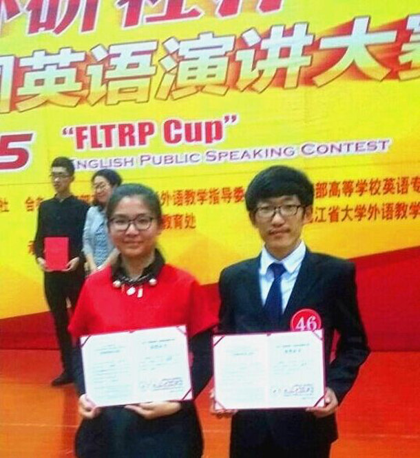 10月31日,2015年“外研社杯”全国英语演讲大赛黑龙江复赛在黑龙江外国语学院举行,来自黑龙江省37所高校的50名选手同台竞技,经过定题演讲、即兴演讲等环节的激烈角逐,我校学生化工151侯莉莉脱颖而出荣获一等奖, 轻化154刘海龙荣获三等奖。这也是我校学子数年来在演讲比赛上首次收获黑龙江省一等奖,成绩喜人,可喜可贺!