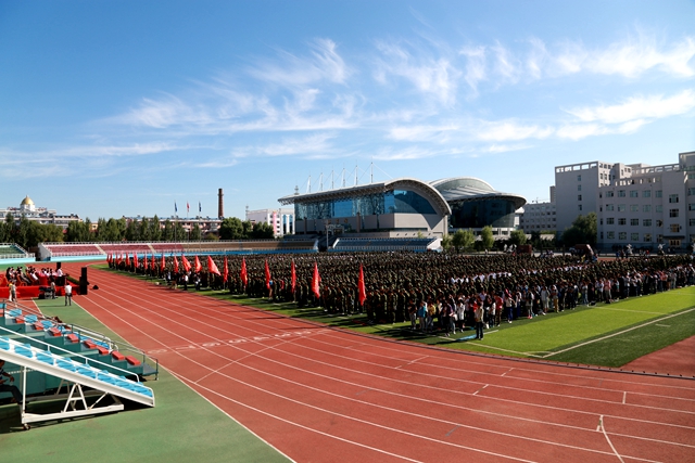 9月3日8:20,2015级新生开学典礼暨军训动员大会在我校西区体育场隆重举行。