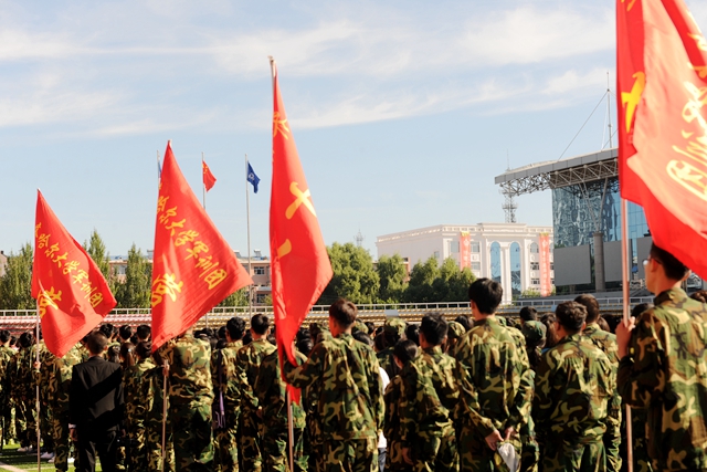 开学典礼拉开大学生活帷幕,军训动员大会吹响进军号角。让我们祝愿全体教官和同学们军训生活愉快,祝愿本次军训工作取得圆满成功,祝愿以军训生活为起点,全体2015级新同学在美丽的环湖大学描绘出精彩的青春画卷!