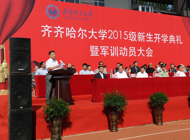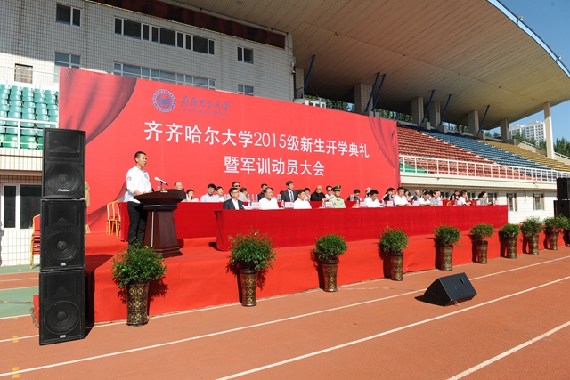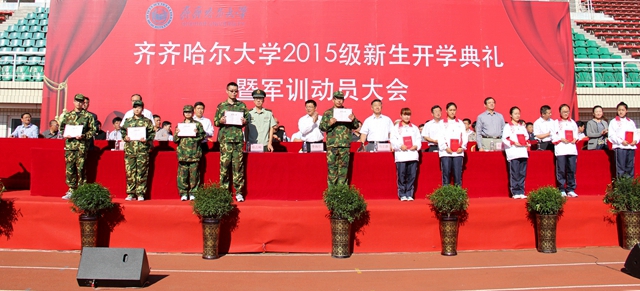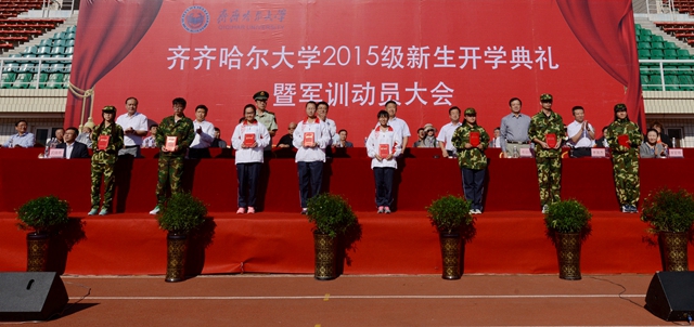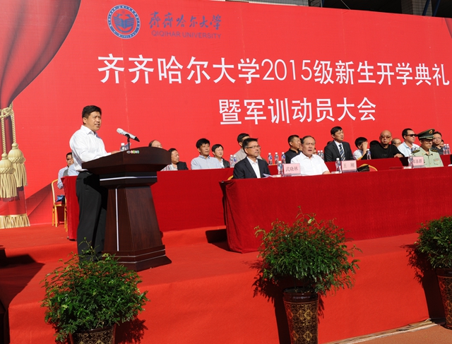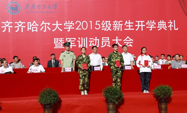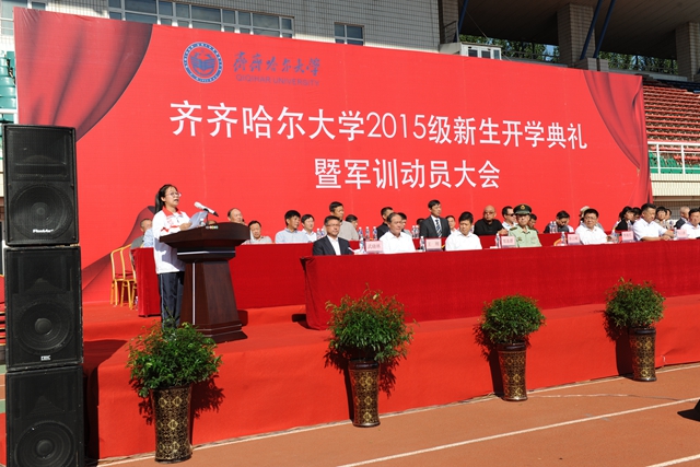 举国同庆胜利日珍爱和平誓要富强,齐大喜迎新同学再接再厉再创荣光。在全国各界隆重纪念抗日战争暨世界反法西斯战争胜利70周年的重要时刻,在学校高水平大学建设全面推进之时,2015级新同学带着对理想和知识的渴求、带着父母亲人的厚望,从祖国四面八方来到蓬勃发展的齐齐哈尔大学,融入到这个充满生机与活力的大学校园,开启了他们追求学业梦想的新征程。美丽齐大因为他们的到来而更加精彩,齐大的明天也一定会因他们的成长进步更加美丽。