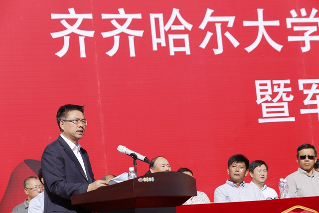 三是担当成就梦想,希望同学们做一名敢于担当的大学生。大学不仅是传授知识技能、铸造灵魂的精神家园,也是学会担当的地方。我们要做有责任感的人,对人有情有义,对集体尽职尽责。生活中担当起同学的情义,做志同道合、互敬互助的好伙伴、好朋友;学业里担当起师生的缘分,教学相长,青出于蓝,携手畅游知识的海洋;情感上担当起父母的希望,照顾好自己的生活起居,扎扎实实的学好本领,养成一种积极向上的人生态度。更要担当起自己的理想,努力培养自己的独立思考和解决问题的能力。只有这样,我们才能成长成才、成就精彩。齐齐哈尔大学风雨历程63年,凝聚着几代齐大人的担当,作为新一代齐大人,你们要有勇气去担当,传承齐大精神,在民族复兴的伟大征程中努力实现自己的青春梦想。