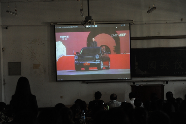 铭记历史,弘扬抗战精神;开拓未来,传承中国记忆。今年是中国人民抗日战争暨世界反法西斯战争胜利70周年,我国于9月3日上午在北京天安门广场举行“纪念中国人民抗日战争暨世界反法西斯战争胜利70周年大会”,习近平总书记出席大会、检阅部队并发表重要讲话。为激励全校师生铭记历史、缅怀先烈、珍爱和平、开创未来,我校师生在第1教学楼、第11教学楼、第25教学楼、文化宫、三致广场等地集中收看了纪念中国人民抗日战争暨世界反法西斯战争胜利70周年大会现场直播。