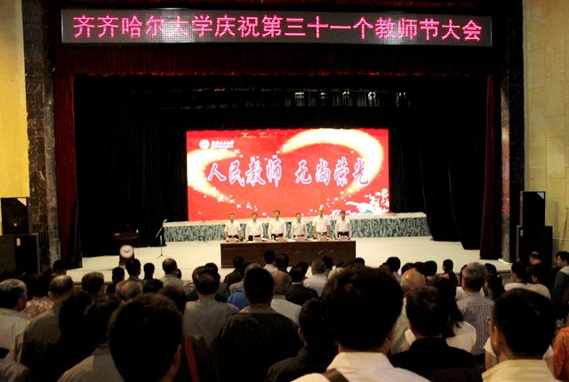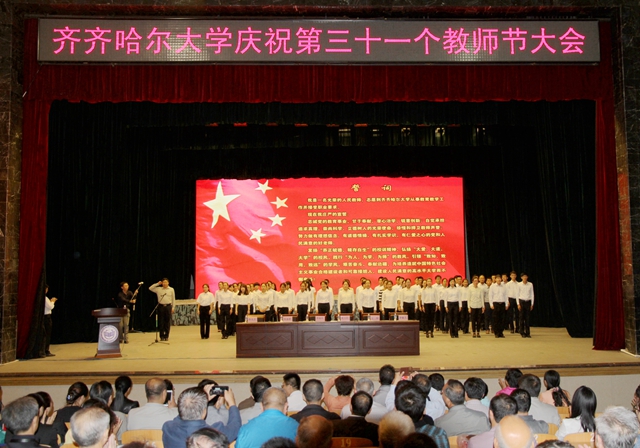 时维九月,贺属金秋;美丽齐大,尊师筑梦。9月9日,我校教职员工和学生代表在中区文化宫欢聚一堂,隆重庆祝第三十一个教师节,以表彰先进、新教师入职宣誓等方式隆重庆祝属于光荣的人民教师自己的节日。