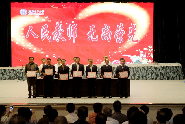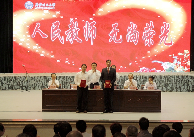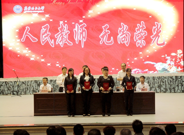 在庆祝第三十一个教师节大会上,李海红书记还为我们的优秀教师点赞,如做完心脏手术仅一个月后就重返课堂的哲学与法学学院社会工作系的徐文老师,获得国家社科基金项目的文学与历史文化学院的邬文清老师,获省五一劳动奖章、省“教学名师奖”、省师德建设先进个人的郭祥峰老师即将赴哈尔滨参加全省教师节庆祝大会并作典型发言,以及去年毕业生离校和今年新生报到时,积极参加“再送一程”自驾车爱心送行、志愿服务的老师们……这样的老师还有不少。