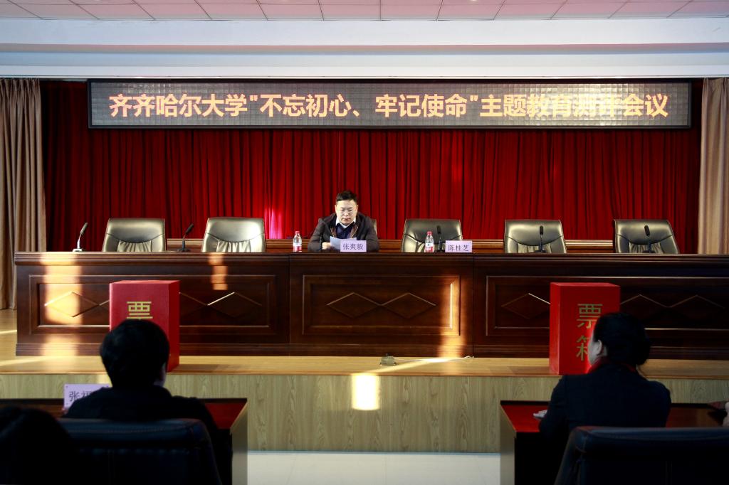 12月27日上午,省委第一巡回指导组在学校求实楼五楼会议室组织召开了“不忘初心、牢记使命”主题教育测评会议,省委组织部干部监督处副处长张爽毅同志、省人力资源和社会保障厅养老保险处四级调研员张福林同志代表省委第一巡回指导组出席会议,校党委领导班子全体成员与随机抽取的二百余名处级党员干部、“两代表一委员”、教学科研骨干、师生党员、普通职工代表参加了测评会议。会议由张爽毅同志主持。