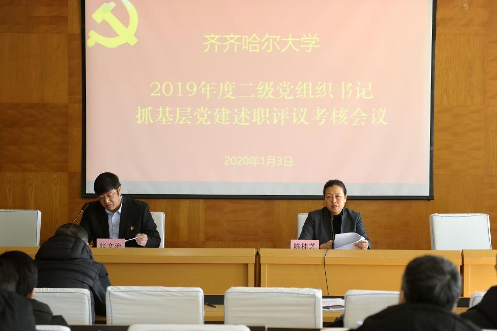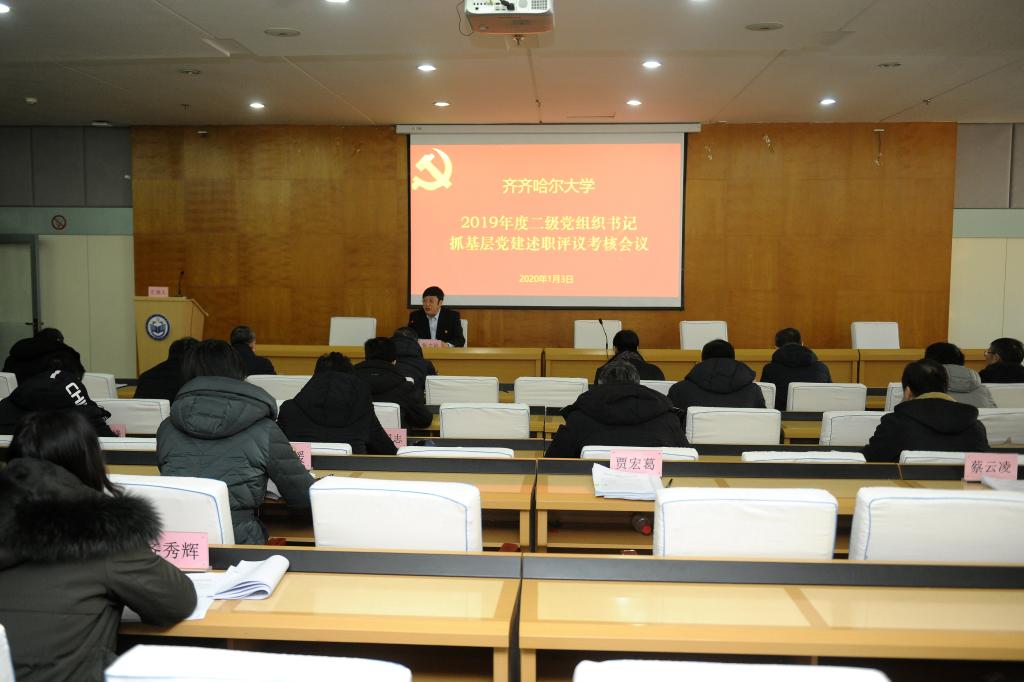 根据《中共黑龙江省委教育工作委员会关于做好2019年度高校党组织书记抓基层党建述职评议考核工作的通知》精神,按照学校党委《关于开展2019年度基层党组织书记抓基层党建述职评议考核工作的通知》安排,1月3日上午,学校在西区主楼学术报告厅召开了二级党组织书记抓基层党建述职评议会。校党委书记、校长陈桂芝与在校校领导出席会议,部分学校党委委员、纪委委员、“两代表一委员”和教师代表参加了述职评议会,会议由张文治主持。