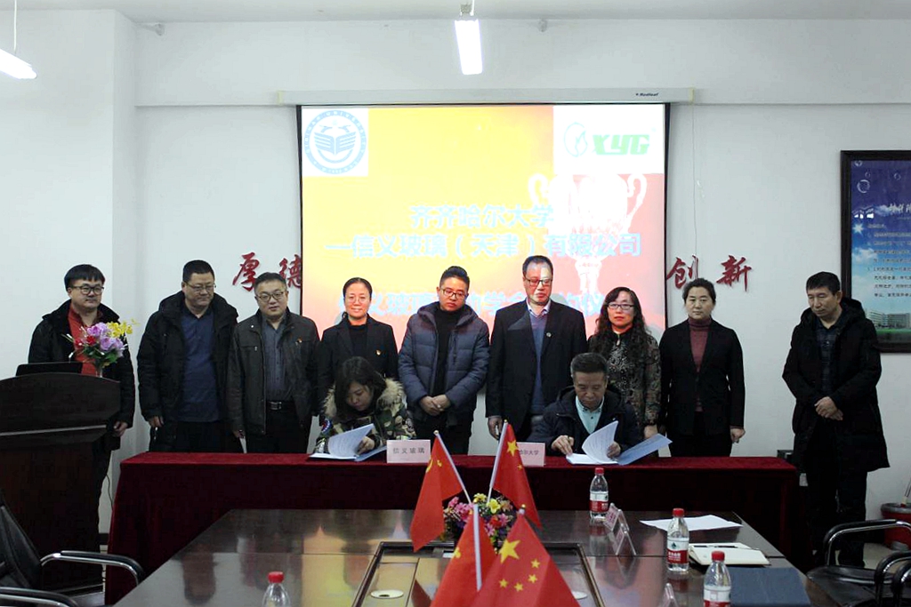 刘天杰经理代表信义玻璃在签约仪式上致辞,对信义玻璃的企业现状、产品现状和发展前景进行了介绍,他表示,近年来,齐齐哈尔大学为信义集团输送了大量人才,信义玻璃高度重视与齐齐哈尔大学的战略合作,希望借着本次奖助学金协议的签署,校企双方保持密切沟通交流,向着“推进校企合作,践行工学结合,造就应用型人才”的目标共同努力,持续推进务实合作。