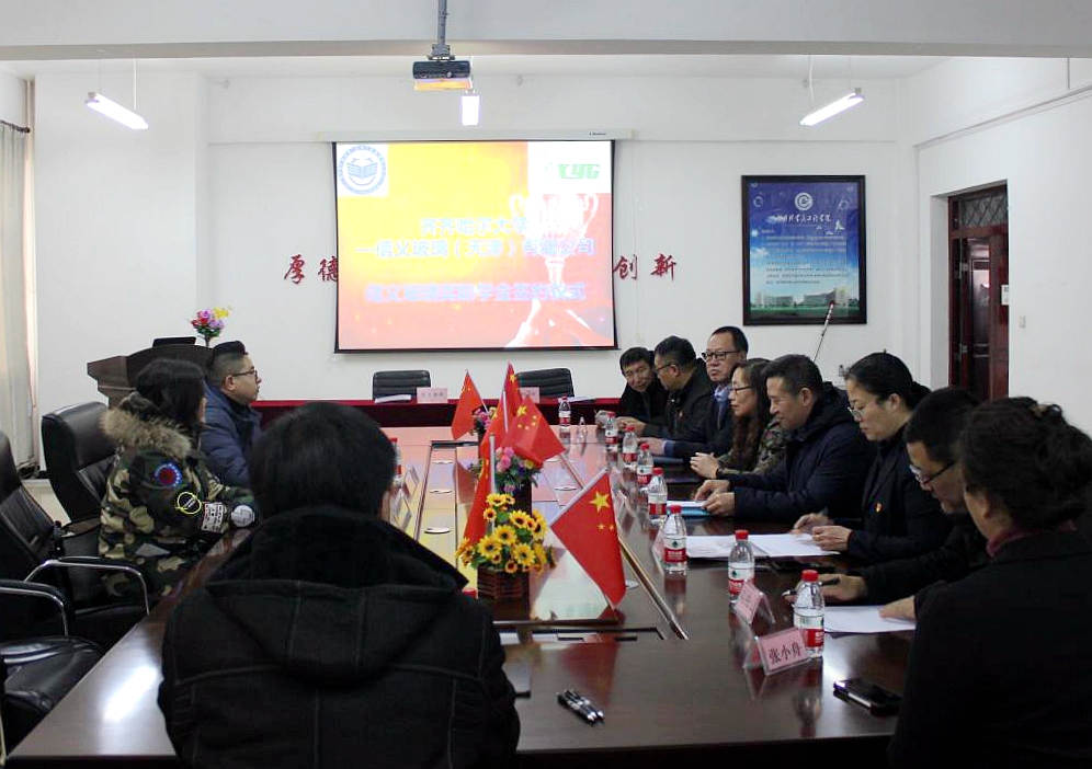 李英杰在讲话中代表学校对成玉一行的到来表示欢迎,对信义玻璃(天津)有限公司长期以来为我校人才培养、学生实习实训等方面工作的大力支持表示衷心的感谢,并介绍了齐齐哈尔大学及材料科学与工程学院无机非金属材料工程系的基本情况。他指出,奖助学金协议的签署,进一步加深了校企之间的合作关系,希望校企双方不断加强合作,在人才培养、学科建设、科学研究等领域发挥各自优势,取得更大的成功。