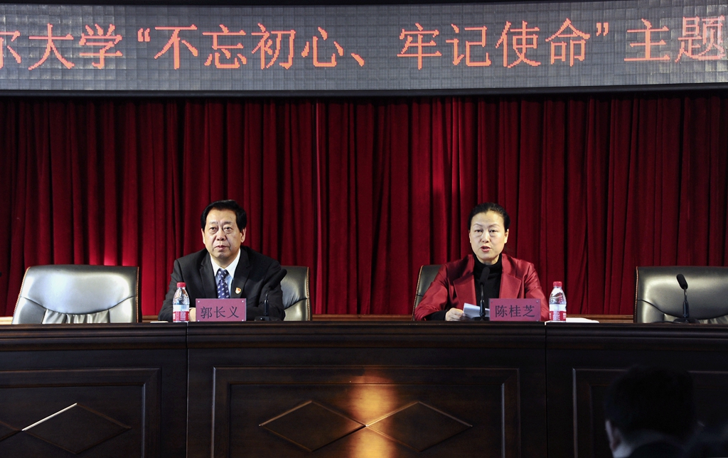 1月10日上午,齐齐哈尔大学“不忘初心、牢记使命”主题教育总结会在求实楼五楼会议室召开,省人大常委会委员、省委第一巡回指导组组长郭长义,省委第一巡回指导组成员张爽毅、孙艳丰、张福林、袁星野出席会议。全校副处级以上领导干部、学校主题教育领导小组办公室全体人员参加了会议。会议由校党委书记、校长、学校主题教育领导小组组长陈桂芝主持。