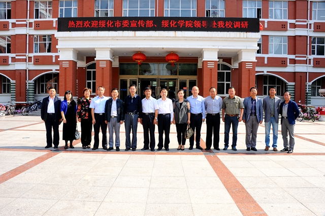 9月17日上午,绥化市委常委、宣传部长李锡文,副部长卞向阳,绥化学院党委委员、宣传统战部部长李淑慧一行在齐齐哈尔市委宣传部副部长覃华、拜泉县委书记秦向东等陪同下,到我校专题调研校地文化合作工作。校党委副书记盖元臣,校工会主席李敏义等会见了调研组一行。校党委宣传、统战部部长王晓梅,副部长孟宪国、何强以及相关学院、部门领导陪同会见。