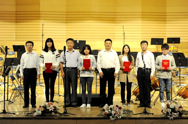 校党委书记李海红、校长马立群,校党委常委、副校长李英杰,校党委常委、工会主席李敏义为获得一等奖的代表颁奖