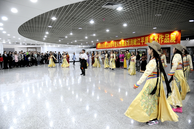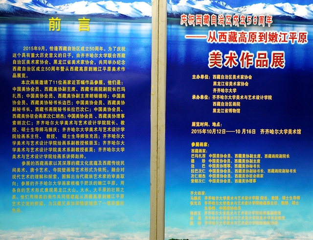 10月12日上午,由西藏美术家协会、黑龙江省美术家协会、齐齐哈尔大学联合主办,黑龙江省博物馆、西藏自治区书画院、齐齐哈尔大学美术与艺术设计学院承办的“庆祝西藏自治区成立50周年暨从西藏高原到嫩江平原美术作品展览”在齐齐哈尔大学美术馆隆重开幕!
