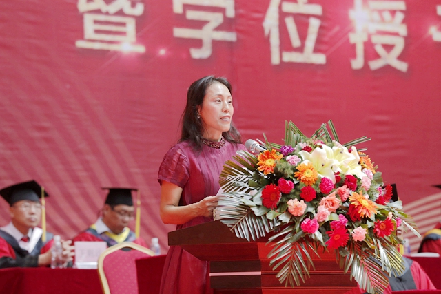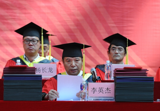 校党委常委、副校长、校学位评定委员会副主任李英杰宣读齐齐哈尔大学《关于准予研究生,留学生,本科学生毕业的决定》。