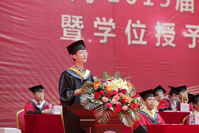 本科毕业生代表、校学生会主席、校优秀毕业生李成同学发言