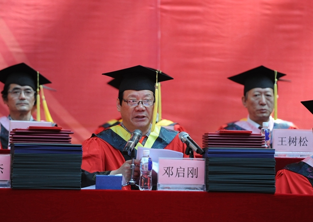校党委常委、副校长、校学位评定委员会副主任邓启刚宣读齐齐哈尔大学《关于授予研究生,留学生,本科学生学位的决定》。