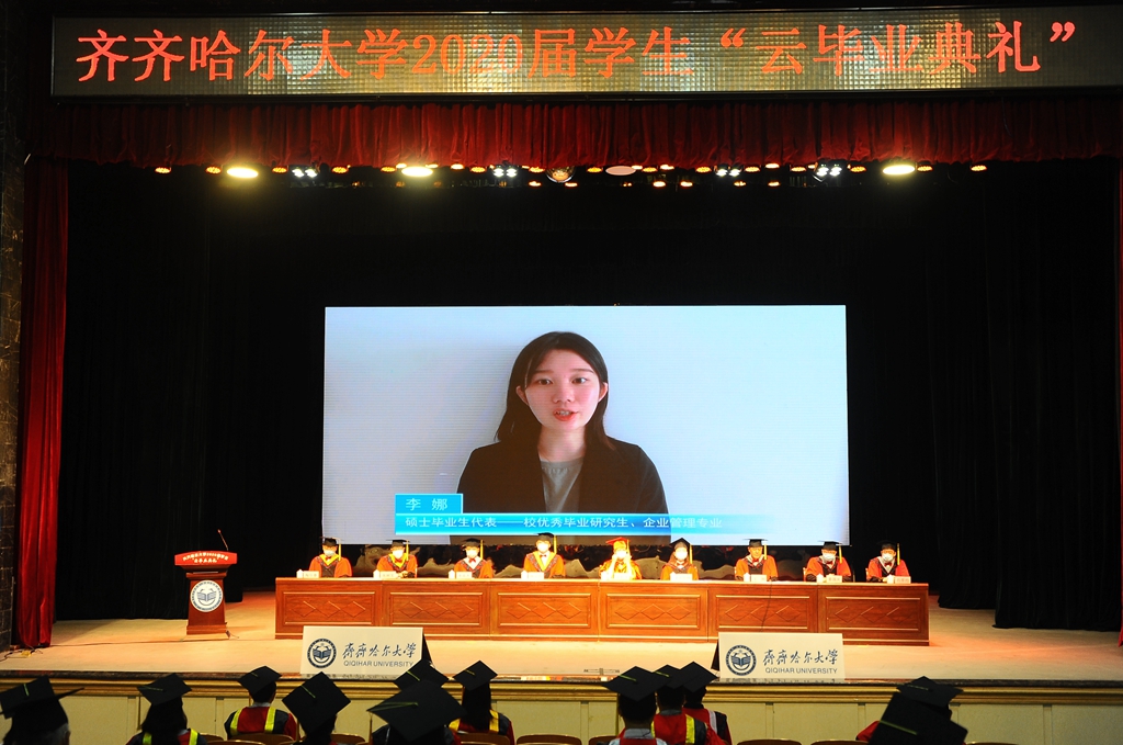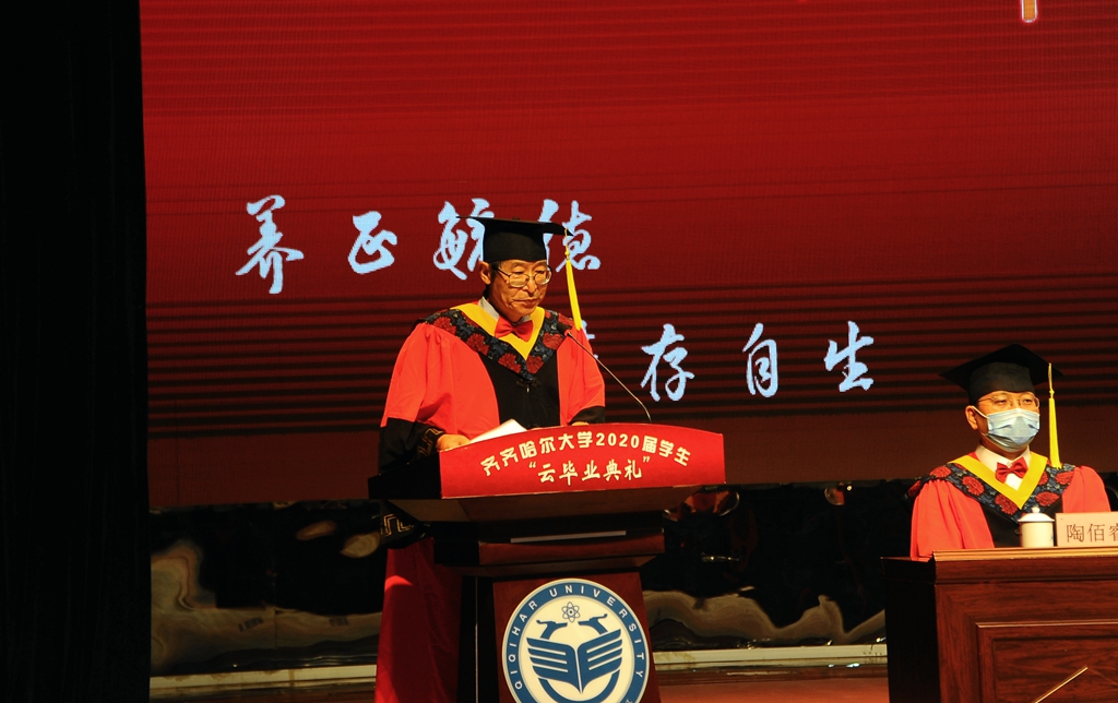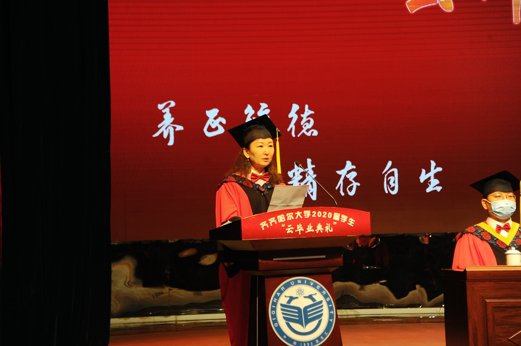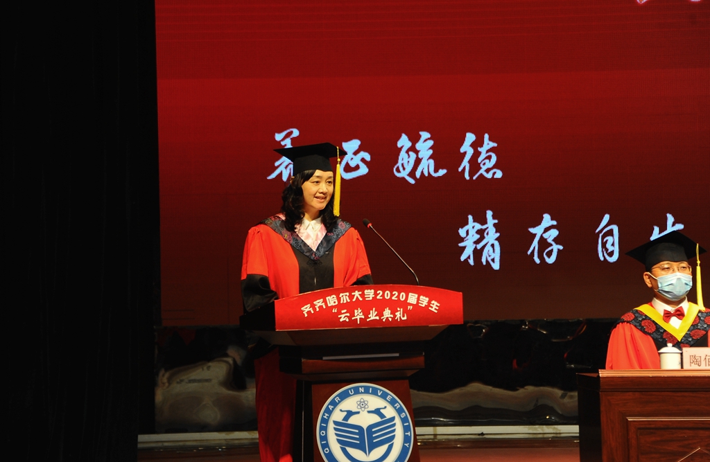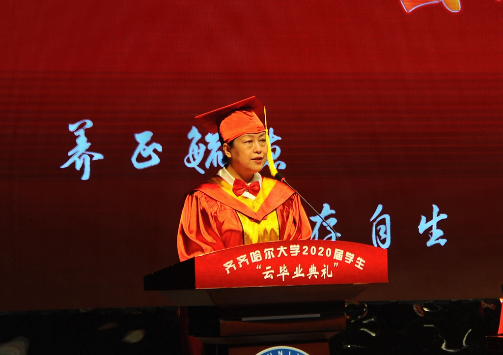 陈桂芝最后说,“衷心祝福齐齐哈尔大学2020届全体毕业生,前程似锦,幸福快乐,一生平安!”
