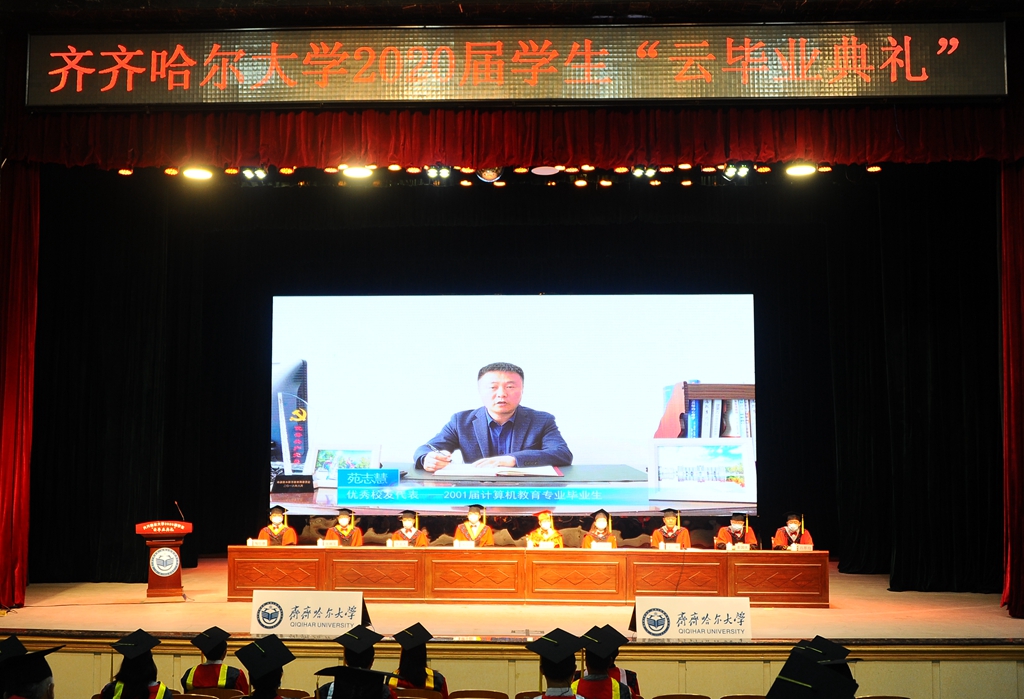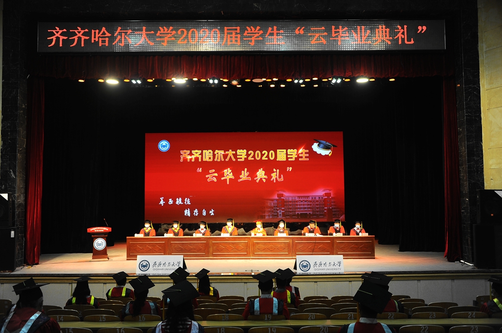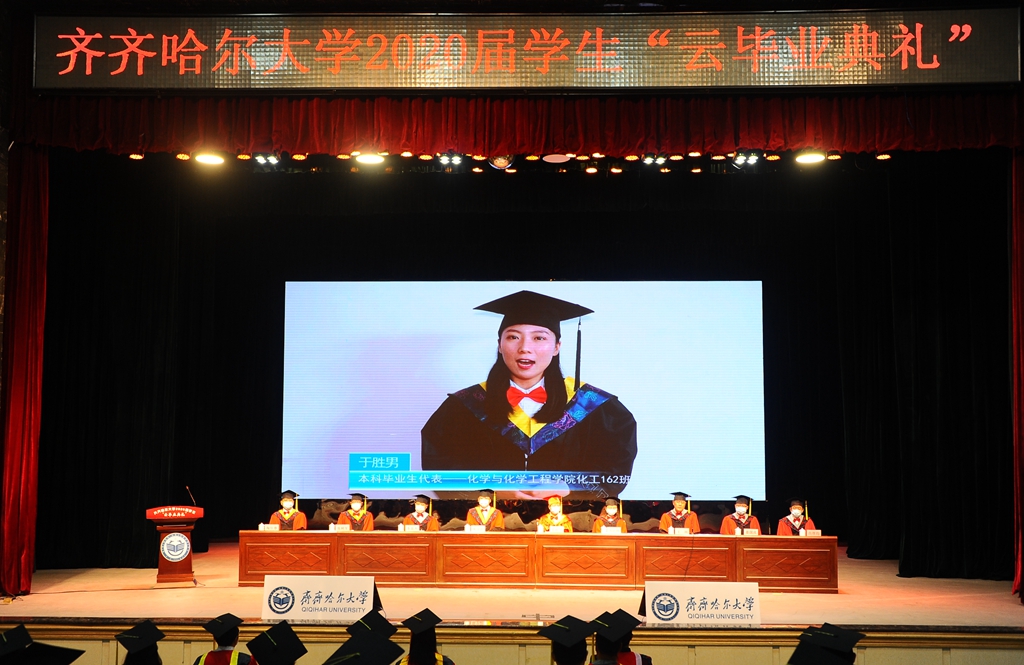 6月20日上午,齐齐哈尔大学2020届学生“云毕业典礼”在文化宫隆重举行。受疫情影响,我校采用线下与线上融合的方式进行现场直播,确保每一位毕业生都能见证这一令人难忘的重要时刻。