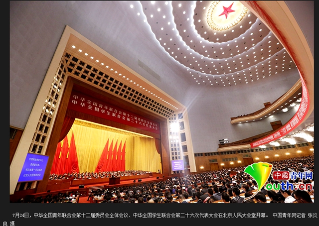中华全国青年联合会第十二届委员会全体会议、中华全国学生联合会第二十六次代表大会于7月24日上午在北京人民大会堂隆重开幕。