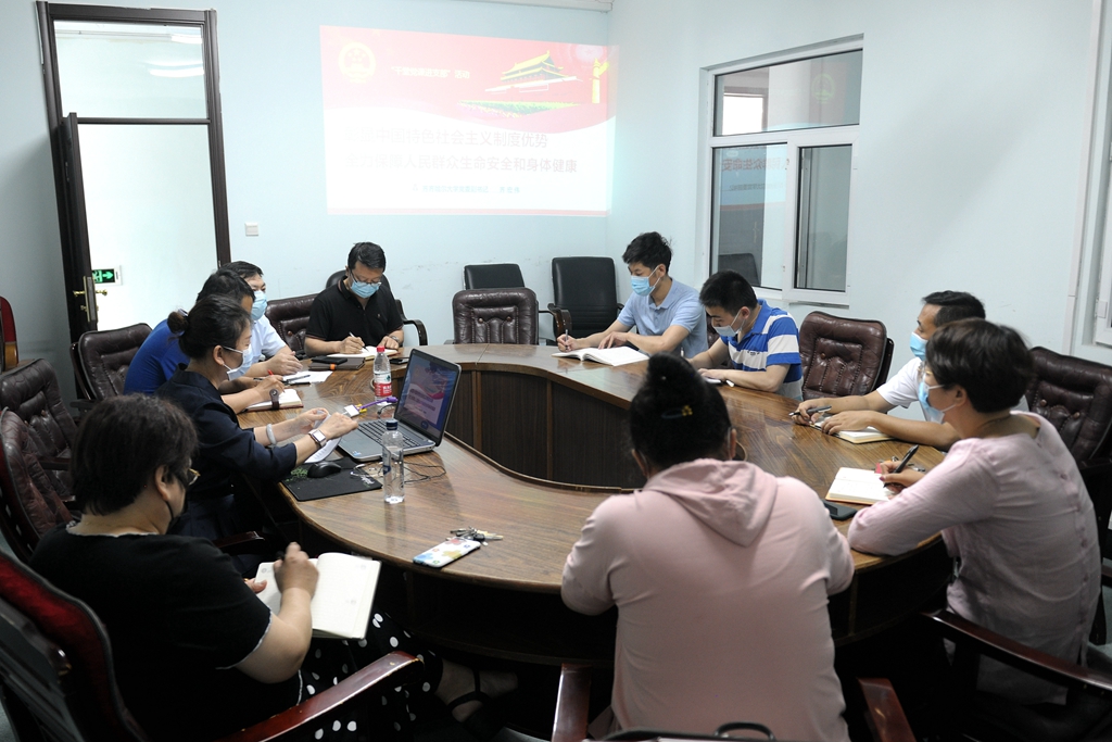 7月9日下午,校党委副书记齐宏伟为所在宣传部-统战部联合党支部全体党员讲题为《彰显中国特色社会主义制度优势全力保障人民群众生命安全和身体健康》的专题党课。她重点围绕习近平总书记关于疫情防控重要讲话和指示批示精神,结合个人自学和所思所想及切身感受,从“抗疫斗争充分彰显了中国特色社会主义的制度优势”、“让党旗在防控疫情斗争一线高高飘扬”、“助力全球抗疫推动人类命运共同体的责任担当”等三个层面进行了深入阐述。她指出,面对突如其来的疫情,以习近平同志为核心的党中央,总揽全局、协调各方,科学防治、精准施策,把人民群众生命安全和身体健康放在第一位,团结带领全党全军全国各族人民万众一心,众志成城,全力打赢疫情防控的人民战争,取得了重大战略成果。我们要深刻学习领会、认真践行习近平总书记关于疫情防控重要讲话和指示批示精神,为实现打赢疫情防控阻击战和学校事业高质量发展双胜利当先锋、做贡献。