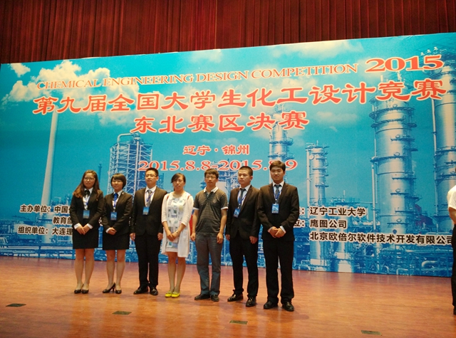 8月9日,我校“3+2队”参加在辽宁工业大学举行的2015年第九届全国大学生化工设计竞赛东北赛区决赛,荣获东北赛区特等奖,并晋级全国总决赛。
